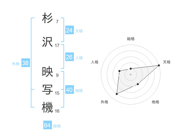 杉沢 映写機さんを姓名の画数から五運を鑑定