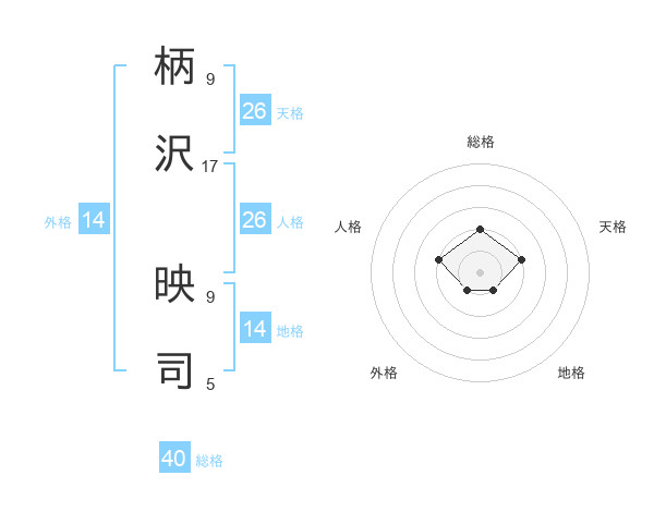 柄沢 映司さんを姓名の画数から五運を鑑定