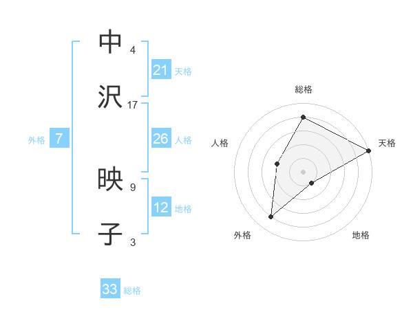 中沢 映子さんの総格は33画の4点!