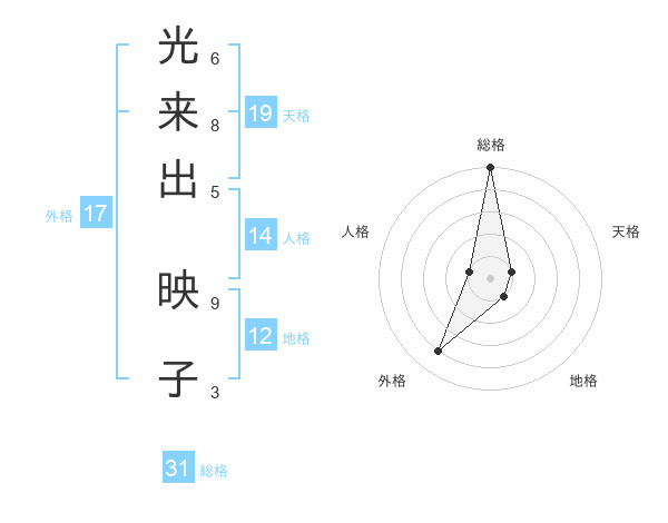 光来出 映子さんの総格は31画の5点!