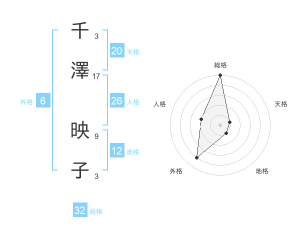 千澤 映子さんの天格は20画の1点!