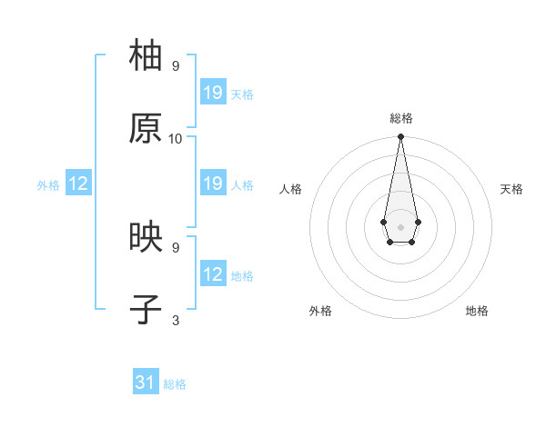 柚原 映子さんの総格は31画の5点!