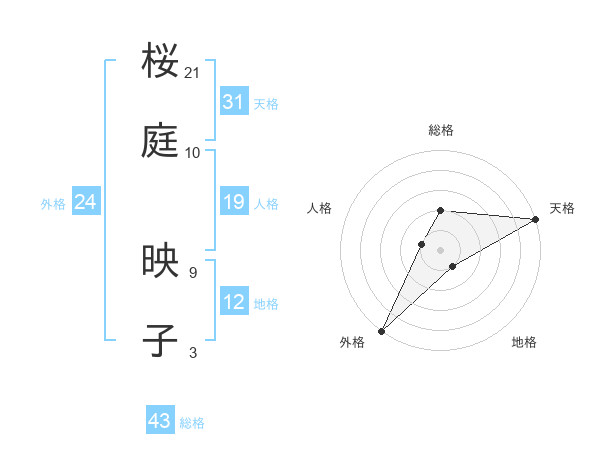 桜庭 映子さんの総格は43画の2点!