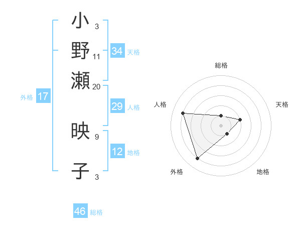 小野瀬 映子さんを姓名の画数から五運を鑑定