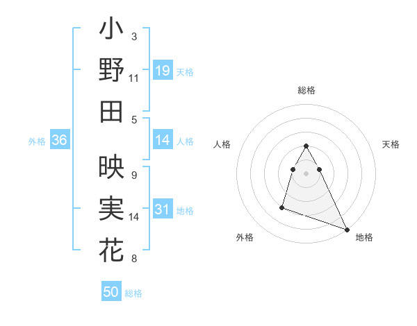 小野田 映実花さんの総格は50画の2点!