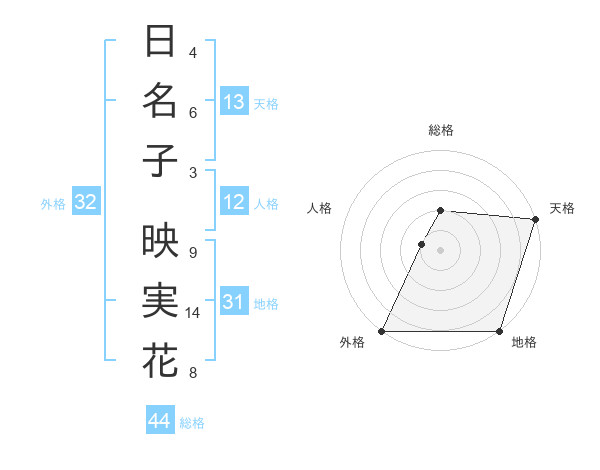日名子 映実花さんを姓名の画数から五運を鑑定