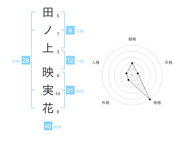 田ノ上 映実花さんを姓名の画数から五運を鑑定