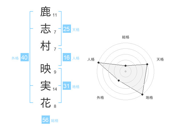 鹿志村 映実花さんを姓名の画数から五運を鑑定