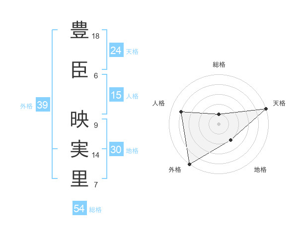 豊臣 映実里さんの外格は39画の5点!