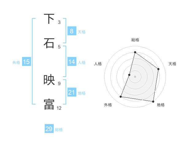 下石 映富さんの総格は29画の4点!