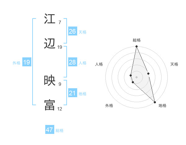 江辺 映富さんの総格は47画の5点!