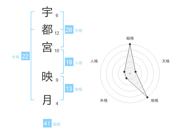 宇都宮 映月さんを姓名の画数から五運を鑑定