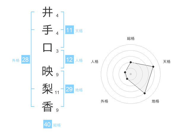 井手口 映梨香さんの総格は40画の2点