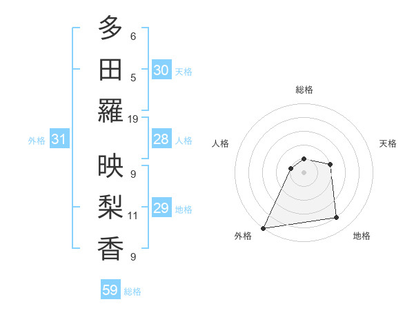 多田羅 映梨香さんを姓名の画数から五運を鑑定