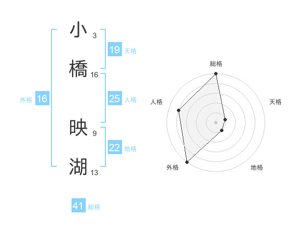 小橋 映湖さんを姓名の画数から五運を鑑定