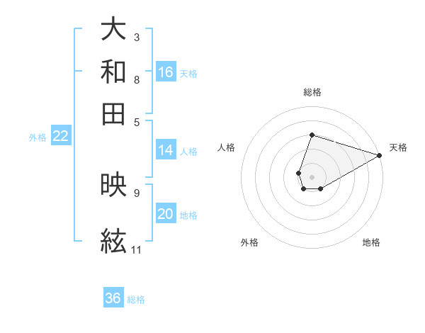 大和田 映絃さんを姓名の画数から五運を鑑定