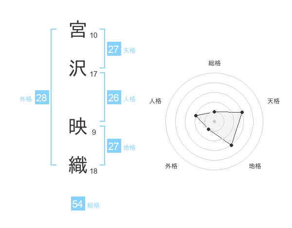宮沢 映織さんを姓名の画数から五運を鑑定