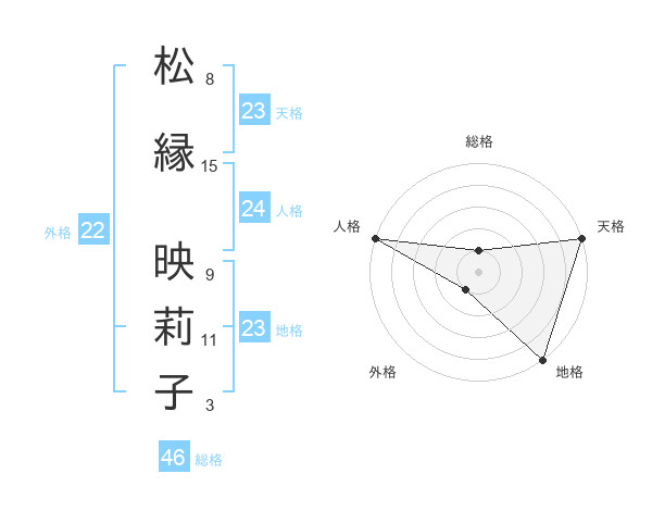 松縁 映莉子さんを姓名の画数から五運を鑑定
