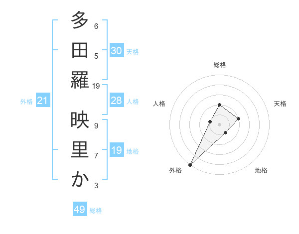 多田羅 映里かさんを姓名の画数から五運を鑑定