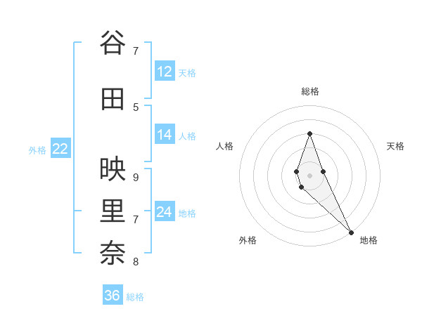 谷田 映里奈さんを姓名の画数から五運を鑑定
