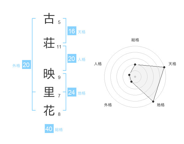古荘 映里花さんを姓名の画数から五運を鑑定