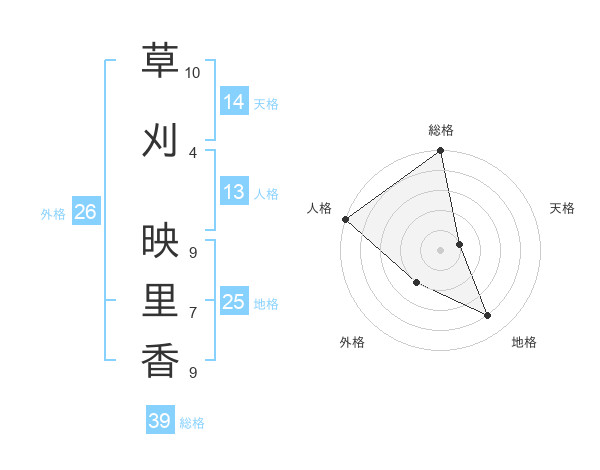 草刈 映里香さんを姓名の画数から五運を鑑定