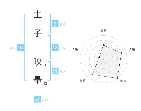 土子 映量さんの総格は27画の3点!