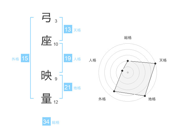 弓座 映量さんの天格は13画の5点!