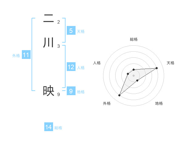 二川 映さんの総格は14画の1点!