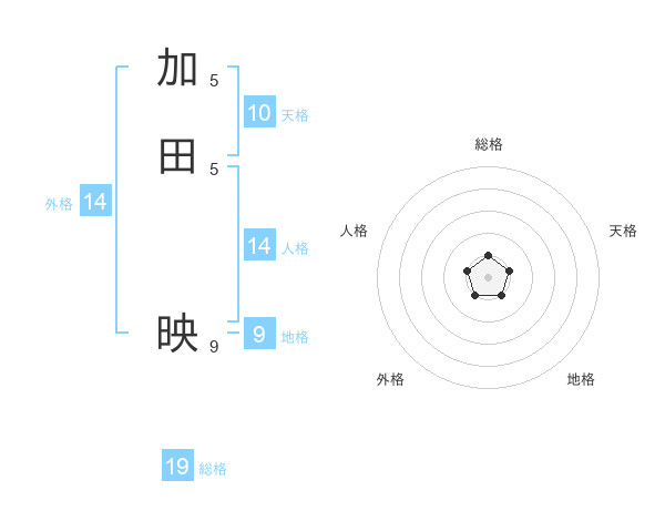 加田 映さんの外格は14画の1点!