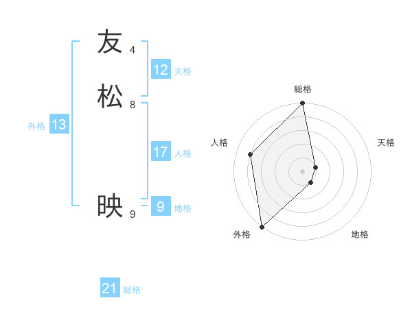 友松 映さんの総格は21画の5点!