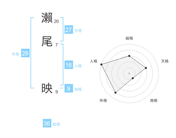 瀨尾 映さんを姓名の画数から五運を鑑定