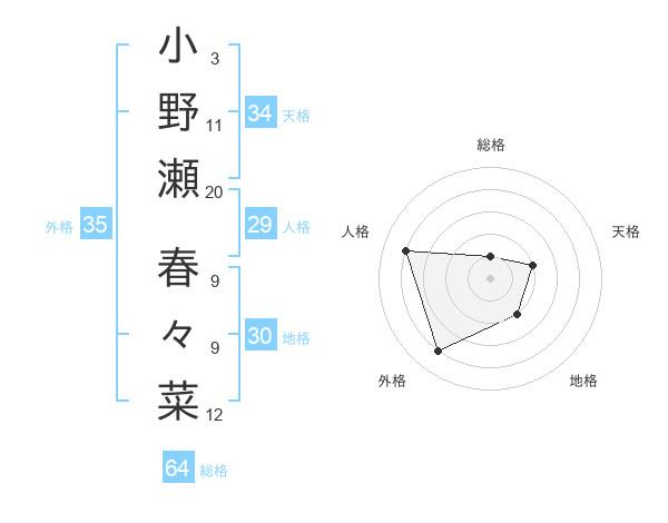 小野瀬 春々菜さんを姓名の画数から五運を鑑定