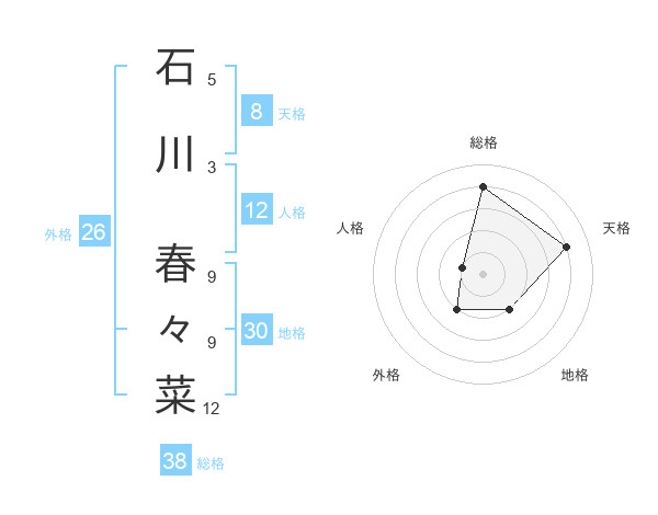 石川 春々菜さんの総格は38画の4点!