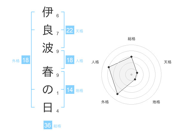 伊良波 春の日さんを姓名の画数から五運を鑑定