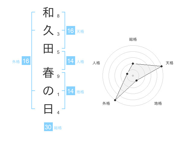 和久田 春の日さんを姓名の画数から五運を鑑定