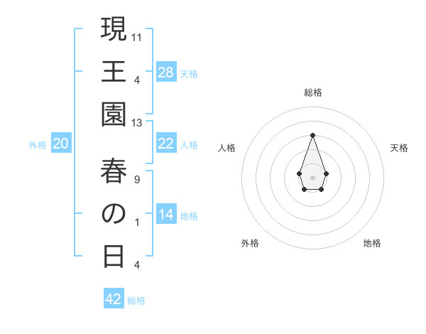 現王園 春の日さんを姓名の画数から五運を鑑定