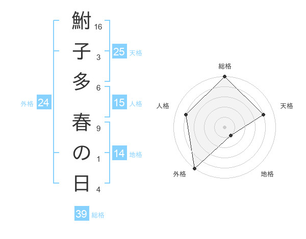 鮒子多 春の日さんを姓名の画数から五運を鑑定