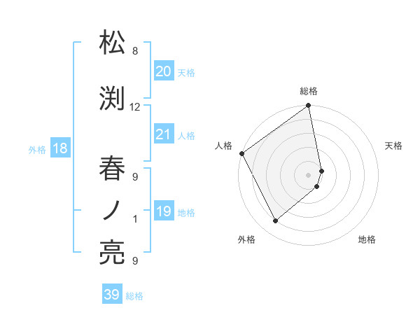 松渕 春ノ亮さんを姓名の画数から五運を鑑定
