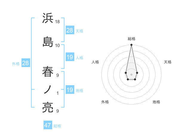 浜島 春ノ亮さんの総格は47画の5点!