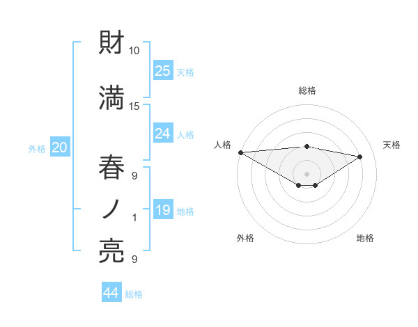 財満 春ノ亮さんの総格は44画の2点!