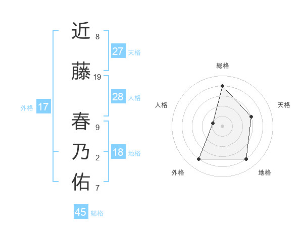 近藤 春乃佑さんの総格は45画の4点!