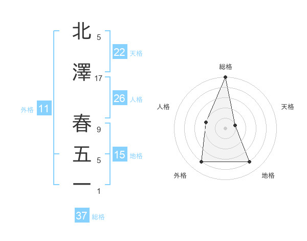 北澤 春五一さんを姓名の画数から五運を鑑定