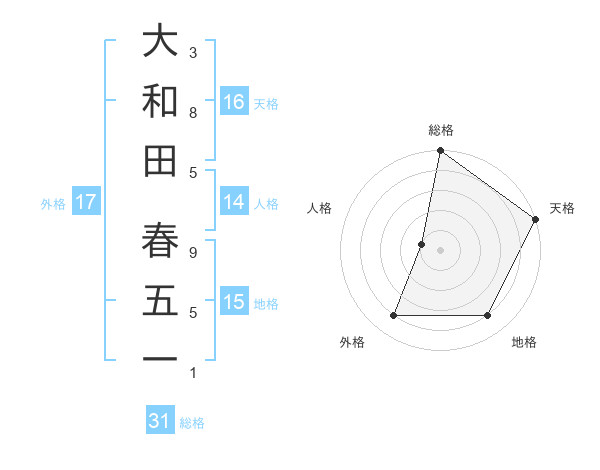 大和田 春五一さんを姓名の画数から五運を鑑定