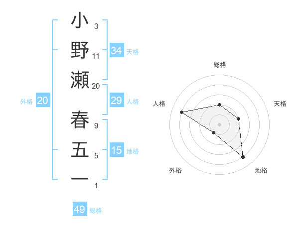 小野瀬 春五一さんを姓名の画数から五運を鑑定