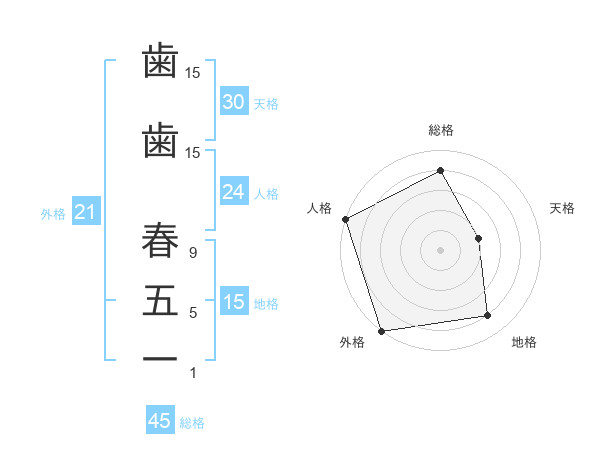 歯歯 春五一さんを姓名の画数から五運を鑑定