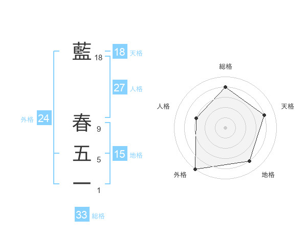 藍 春五一さんの総格は33画の4点!