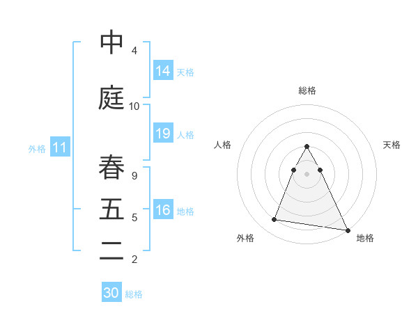 中庭 春五二さんの外格は11画の4点!