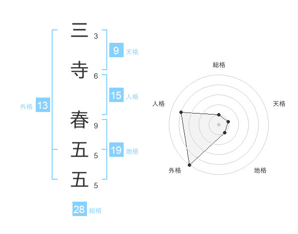 三寺 春五五さんの外格は13画の5点!