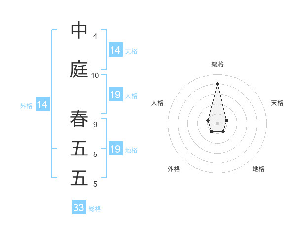中庭 春五五さんを姓名の画数から五運を鑑定